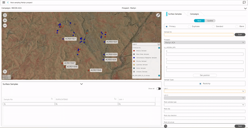 For surface sampling, the importance of orientating oneself cannot be overstated. Geologists need to be able to freely move around and visualise where they are against the hole location, with contextual information about the area. Unlike other styles of drilling, geologists emphasise spatial awareness and visual representation of their sample points when surface sampling. Geologists can now take advantage of the GPS-enabled functionality available in the GIM Suite mobile application, capturing the coordinates of their sample points accurately. GIM Suite offers a dedicated design task for surface sampling to help geologists configure the data capture method efficiently.