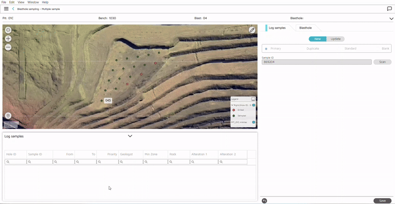 Simplicity and efficiency are key for capturing blasthole samples in an open-pit environment where geologists must navigate around designated blastholes efficiently, before shotfirers initiate blasting operations. To aid geologists, GIM Suite web and mobile offers a mapping component to help geologists orientate themselves amongst various benches.