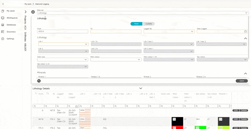 Diamond drilling demands a logging process with granular detail. An overview of the log is critical, with the ability to see detailed downhole data, and other associated data such as geotechnical properties, at a centimeter scale. The GIM Suite web and mobile applications interface allows the logger to focus on the graphical representation of core data and geological information, catering to the deliberate and precise logging and analysis required.