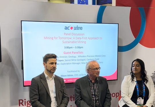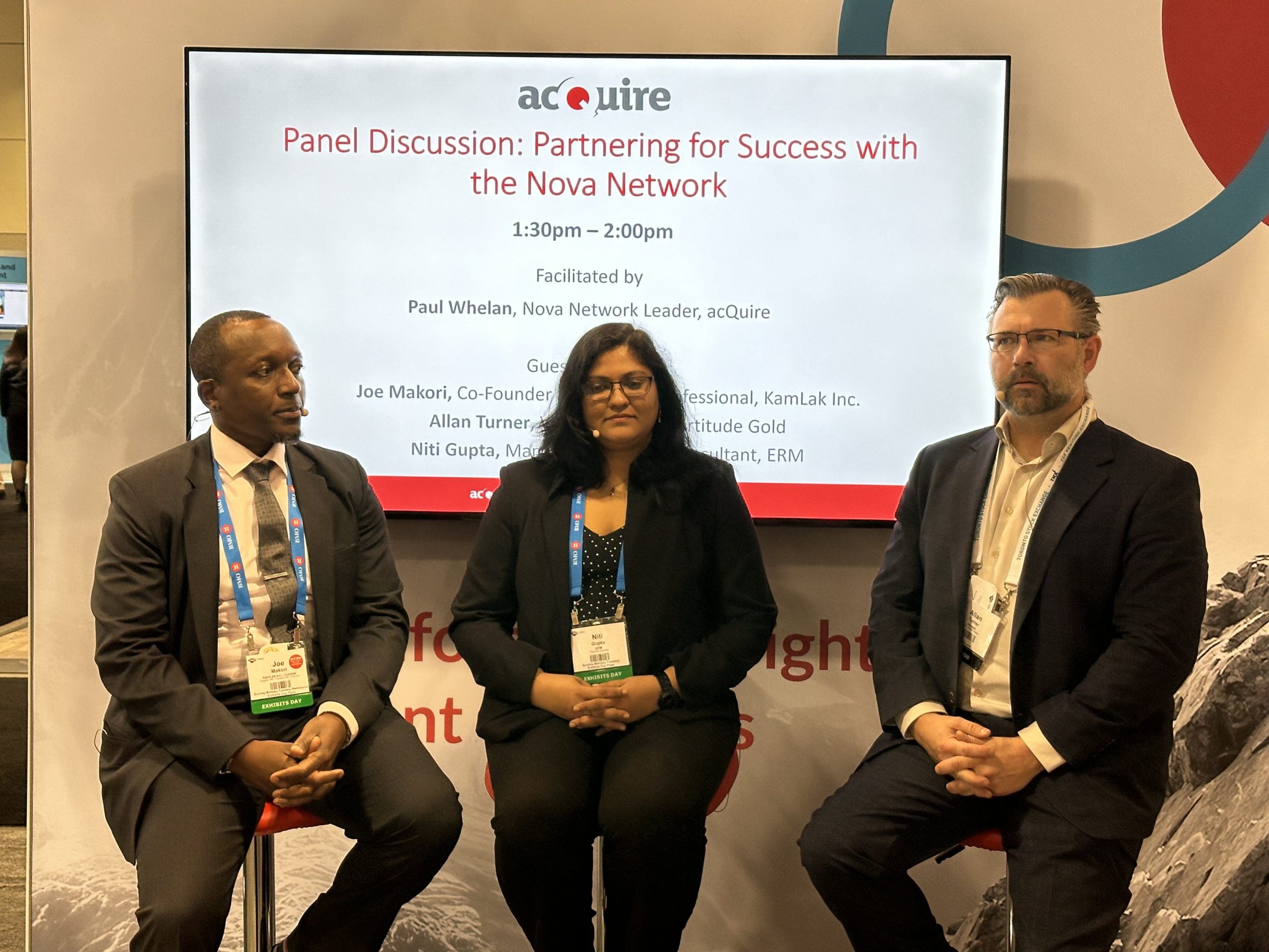 Back at the Acquire booth, the Nova Network panel discussion, “Partnering for success with the Acquire Nova Network”, with guest speakers, Joe Makori from KamLak Inc., Al Turner from Fortitude Gold and Niti Gupta from ERM, further highlighted the necessity of partnerships in addressing the skills shortage, growing ESG obligations and surge in data management challenges in the mineral exploration and mining industry.