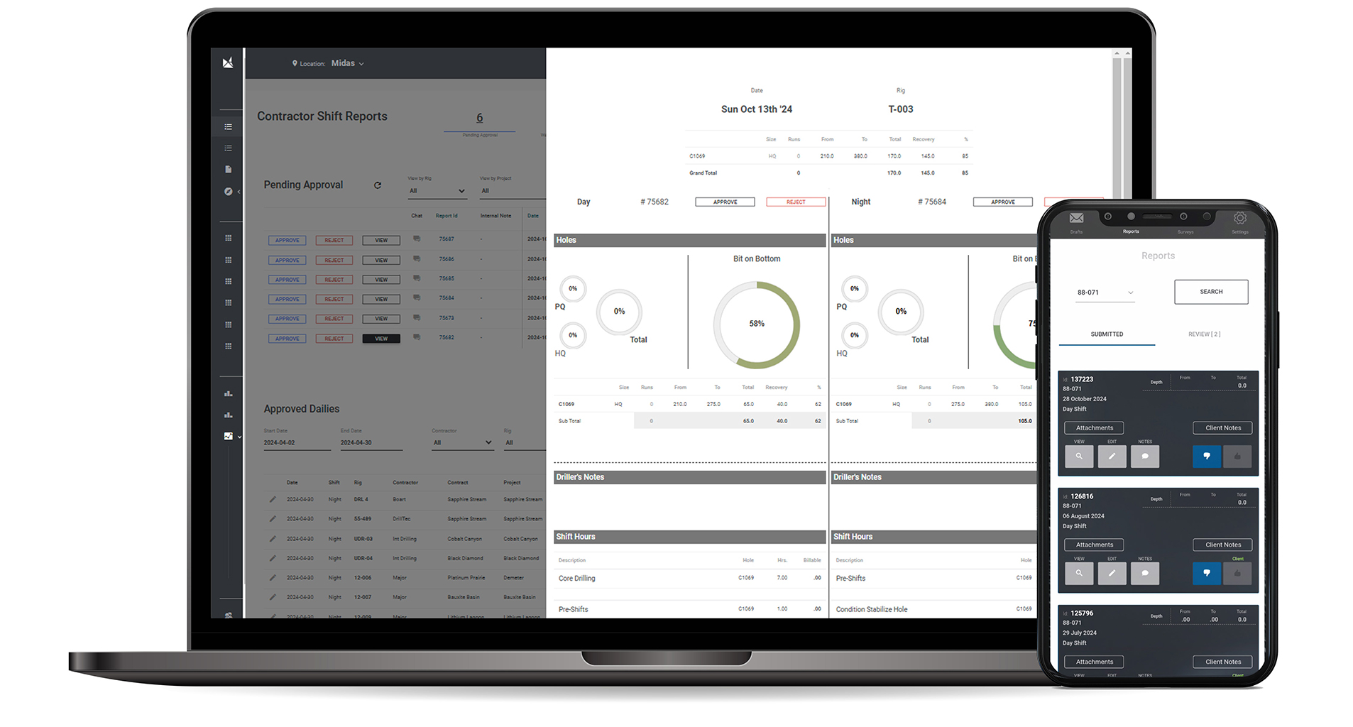 A secure portal allows shift reports and invoices to be shared easily and securely between drilling contractors and miners, creating efficiency at every step.