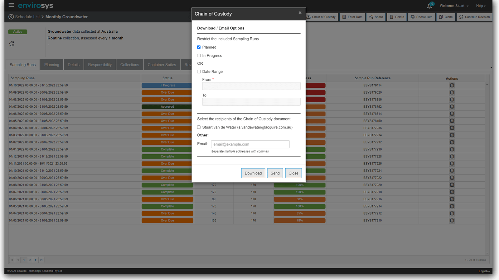 Environmental professionals will notice enhancements to EnviroSys’ Sample Management functionality, making it easier to work with Chain of Custody (CoC) when managing samples and sampling activities.