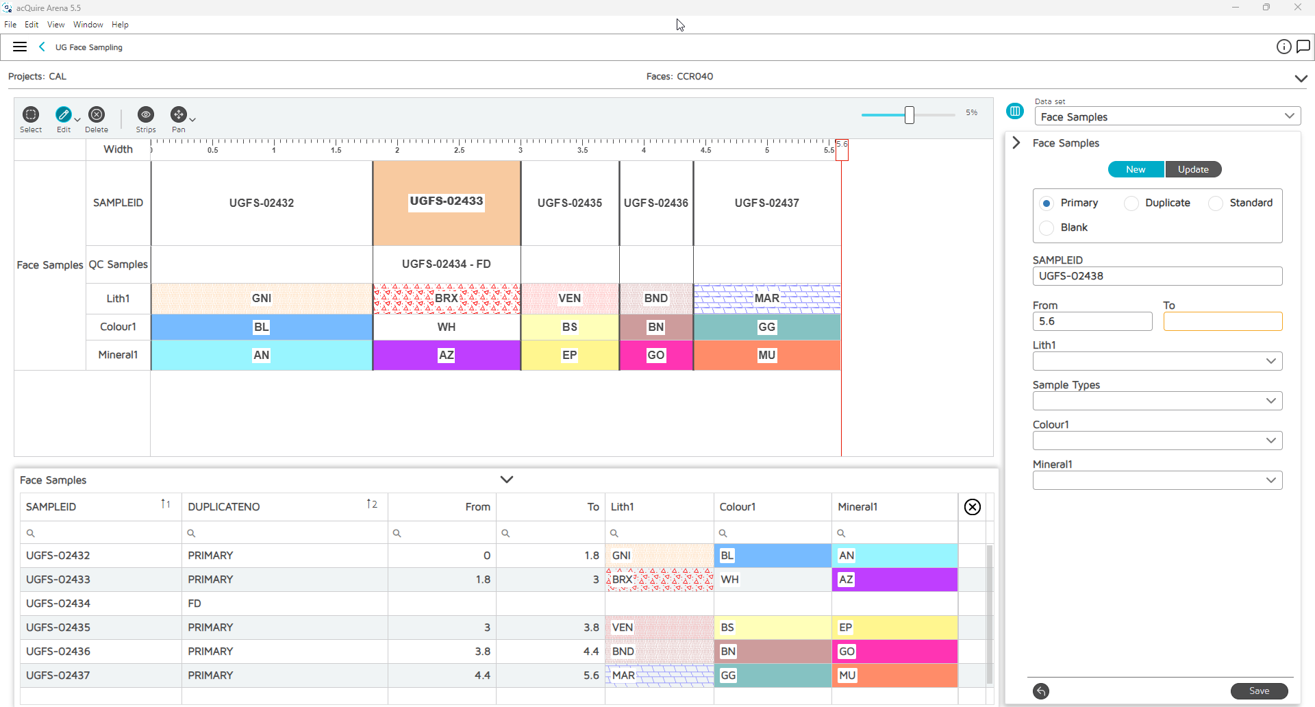 For example, a geologist conducting underground face mapping can select that purpose-built task, featuring a horizontal graphical log scaled so they have clear visibility of their logging and sampling details, making it easier to collect data quickly.